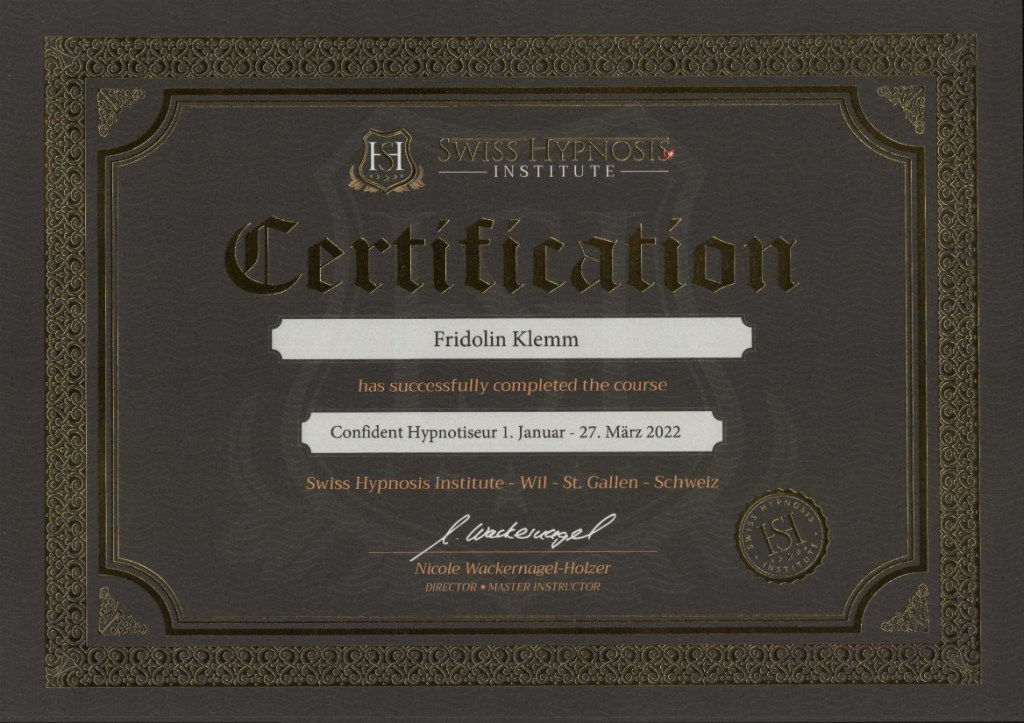 - Confident Hypnotist am Swiss Hypnosis Institut durch Nicole Wackernagel.